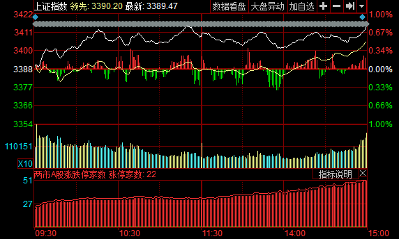 截至收盤,滬指報(bào)3413.57點(diǎn),漲0.75%,成交2426億元;深成指報(bào)11467.97點(diǎn),漲0.83%,成交2832億元;創(chuàng)業(yè)板指數(shù)報(bào)1859.07點(diǎn),漲0.47%,成交753.8億元。