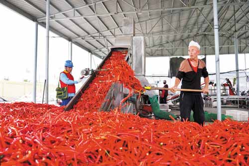 “以前種地靠天,現(xiàn)在種地全靠電。電網升級改造,你們把三相電架設到產業(yè)園區(qū)后電力充足,不再發(fā)生經常停電的現(xiàn)象,澆地灌溉更加快捷、方便。辣椒之所以有這樣的收成,都歸功于你們充足的電力和優(yōu)質服務,今年我們已經簽下了100萬噸的辣醬訂單,正加班加點生產著?!眻@區(qū)負責人楊新軍一臉笑意迎了上來。
