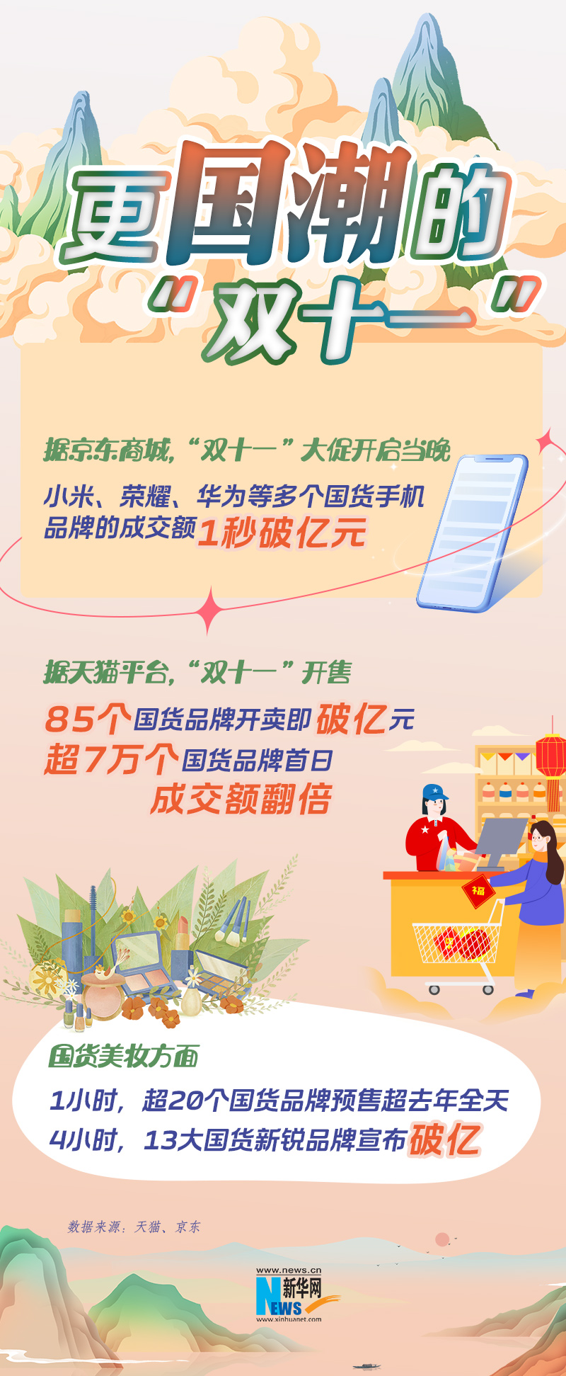 公開(kāi)數(shù)據(jù)顯示,10月23日京東“雙十一”開(kāi)啟當(dāng)晚,小米、榮耀、華為等多個(gè)國(guó)貨手機(jī)品牌的成交額1秒破億元;10月31日晚天貓“雙十一”正式開(kāi)售,85個(gè)國(guó)貨品牌開(kāi)賣(mài)即破億元,超7萬(wàn)個(gè)國(guó)貨品牌首日成交額翻倍。