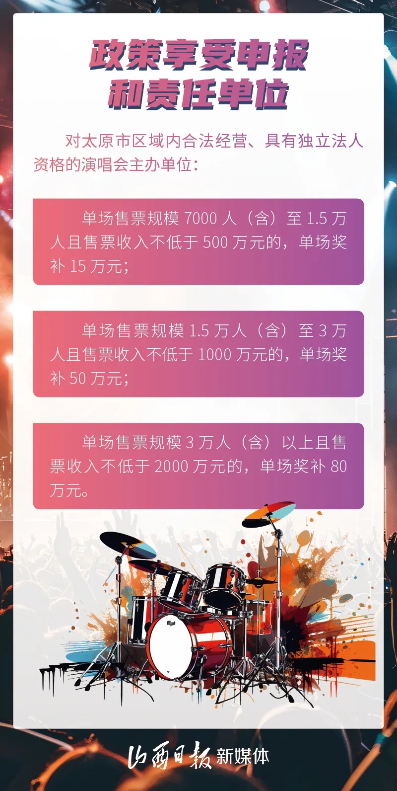 為做大太原市演唱會經(jīng)濟(jì),加快建設(shè)華北地區(qū)重要演藝中心,打造“國內(nèi)外重要文化旅游目的地”,日前,太原市發(fā)展和改革委、市文化和旅游局、市財政局等11個部門聯(lián)合制定出臺《支持演唱會經(jīng)濟(jì)發(fā)展的若干措施(試行)》。