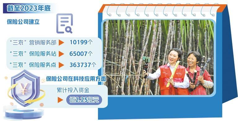 科技的運(yùn)用也有效推動(dòng)保險(xiǎn)業(yè)服務(wù)農(nóng)村。中國(guó)保險(xiǎn)行業(yè)協(xié)會(huì)發(fā)布的《保險(xiǎn)業(yè)高質(zhì)量服務(wù)鄉(xiāng)村振興藍(lán)皮書(shū)(2024)》顯示,保險(xiǎn)業(yè)有效提升了縣域和農(nóng)村機(jī)構(gòu)網(wǎng)點(diǎn)覆蓋率,截至2023年底,保險(xiǎn)公司建立“三農(nóng)”營(yíng)銷(xiāo)服務(wù)部10199個(gè),“三農(nóng)”保險(xiǎn)服務(wù)站65007個(gè),“三農(nóng)”保險(xiǎn)服務(wù)點(diǎn)363737個(gè)。2023年,保險(xiǎn)公司在科技應(yīng)用方面累計(jì)投入資金近2.25億元,主要用于空間信息技術(shù)、AI識(shí)別、人工智能、物聯(lián)網(wǎng)等科技手段應(yīng)用,構(gòu)建農(nóng)業(yè)生產(chǎn)、風(fēng)險(xiǎn)信息數(shù)據(jù)共享平臺(tái)。