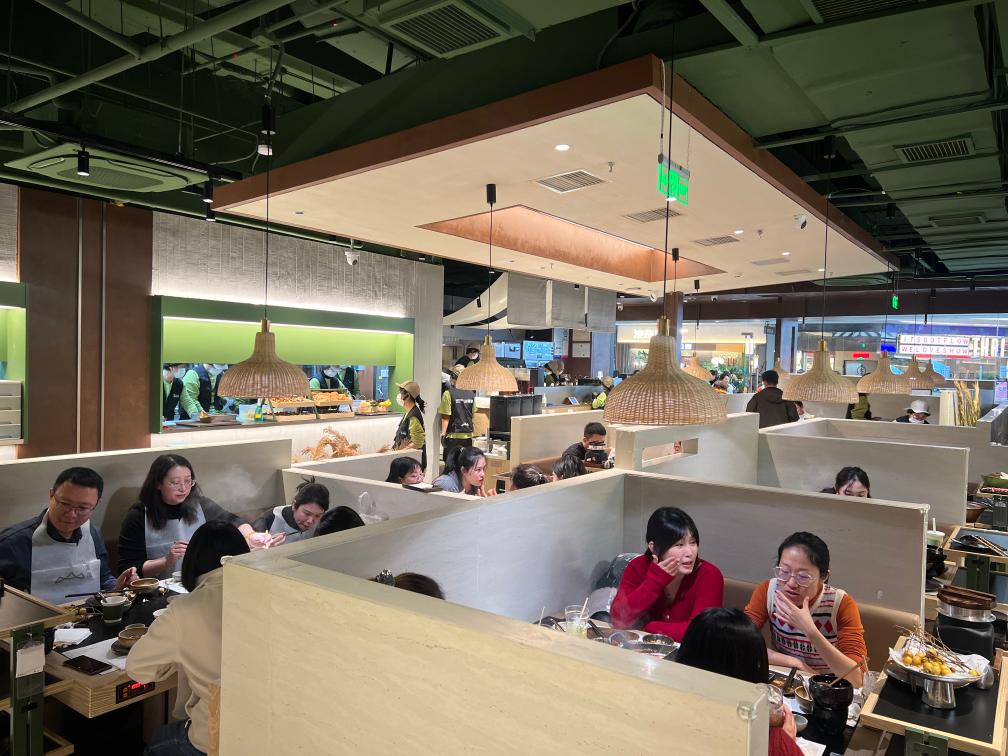 臨近跨年零點(diǎn),山緩緩餐廳山西首店還有一些顧客在排隊(duì)候餐,期待嘗鮮“山野風(fēng)”火鍋。山緩緩品牌北區(qū)運(yùn)營總監(jiān)王志剛說:“跨年當(dāng)日我們店的營收額突破8萬元?!辈惋嬙谛嘛L(fēng)格和新體驗(yàn)上迭代升級,區(qū)域首店也更能激發(fā)消費(fèi)者熱情。