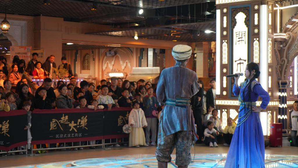 身穿漢代服飾的演員,穿行于充滿古香古色的仿漢代建筑群中,和游客交流互動(dòng)、合影留念,帶領(lǐng)大家沉浸式體驗(yàn)歷史書(shū)上的漢代生活……走進(jìn)位于甘肅省蘭州市七里河區(qū)的蘭州中心地下一層,便進(jìn)入了“風(fēng)起大漢”沉浸式演藝街區(qū)。 26歲的文鑫是演藝街區(qū)的一名演員,也是演藝部負(fù)責(zé)人。節(jié)目開(kāi)演時(shí),他可能是意氣風(fēng)發(fā)的驃騎將軍霍去病,可能是出使西域的張騫,也可能是往來(lái)絲路的西域商人。 “和傳統(tǒng)劇場(chǎng)不一樣,游客不是坐著看,而是走進(jìn)場(chǎng)景里、走到角色身邊或成為場(chǎng)景的一部分,近距離感受文化?!蔽啮握f(shuō)。