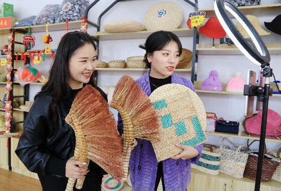 10月16日,安徽淮南市一家參展企業(yè)通過(guò)直播平臺(tái),進(jìn)行線上壽州香草香包展示。陳彬攝(人民視覺(jué))