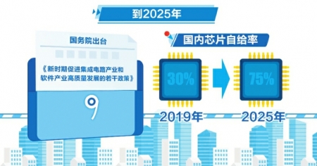今年8月初,國務院出臺了《新時期促進集成電路產(chǎn)業(yè)和軟件產(chǎn)業(yè)高質(zhì)量發(fā)展的若干政策》,提出到2025年,國內(nèi)芯片自給率從2019年的30%達到75%。對于制程小于28納米,經(jīng)營期15年以上的頭部企業(yè),最高可享受十年的免稅期。