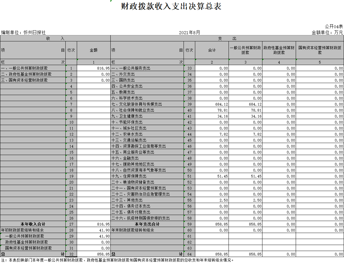 (五)政府性基金決算情況:忻州日?qǐng)?bào)社不涉及政府性基金,故政府性基金決算支出為0.