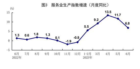上半年,服務(wù)業(yè)增加值同比增長6.4%,比一季度加快1.0個百分點。其中,住宿和餐飲業(yè),信息傳輸、軟件和信息技術(shù)服務(wù)業(yè),租賃和商務(wù)服務(wù)業(yè),金融業(yè),批發(fā)和零售業(yè)增加值分別增長15.5%、12.9%、10.1%、7.3%、6.6%。6月份,服務(wù)業(yè)生產(chǎn)指數(shù)同比增長6.8%。其中,住宿和餐飲業(yè),信息傳輸、軟件和信息技術(shù)服務(wù)業(yè),租賃和商務(wù)服務(wù)業(yè)生產(chǎn)指數(shù)分別增長20.0%、15.4%、9.3%。1-5月份,全國規(guī)模以上服務(wù)業(yè)企業(yè)營業(yè)收入同比增長8.5%。6月份,服務(wù)業(yè)商務(wù)活動指數(shù)為52.8%,業(yè)務(wù)活動預(yù)期指數(shù)為60.3%。其中,航空運輸、郵政快遞、電信廣播電視及衛(wèi)星傳輸服務(wù)、貨幣金融服務(wù)、保險等行業(yè)商務(wù)活動指數(shù)均位于60.0%及以上高位景氣區(qū)間。