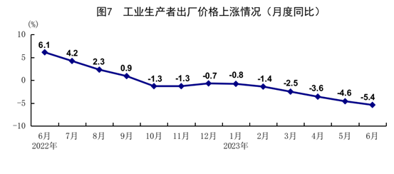 上半年,全國工業(yè)生產(chǎn)者出廠價格同比下降3.1%。其中,6月份同比下降5.4%,環(huán)比下降0.8%。上半年,工業(yè)生產(chǎn)者購進(jìn)價格同比下降3.0%。其中,6月份同比下降6.5%,環(huán)比下降1.1%。