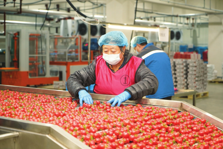 “陽高紅”西紅柿是陽高縣著力發(fā)展的特色產(chǎn)業(yè)。圖為沃林農(nóng)業(yè)有限公司工人正在分揀西紅柿。周振宇攝