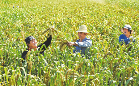 廣靈縣宜興鄉(xiāng)三間房村村民正在查看谷子的長勢(shì)情況。霍飛飛攝 閱讀提示 圓潤金黃的山西小米、酥脆多汁的玉露香梨、香甜可口的吉縣蘋果、聲名遠(yuǎn)播的平遙牛肉……這幾年,一大批“晉字號(hào)”農(nóng)產(chǎn)品吸引了八方來客。 同樣是桃仁,有的撒點(diǎn)巧克力粉就闖進(jìn)了國際市場(chǎng);同樣是蘋果,有的論斤賣,有的卻是按個(gè)賣……背后體現(xiàn)的就是品牌的魅力和力量。 農(nóng)業(yè)品牌是農(nóng)業(yè)競爭力的核心標(biāo)志,也是現(xiàn)代農(nóng)業(yè)的重要引擎。近年來,我省立足資源稟賦,圍繞實(shí)施農(nóng)業(yè)“特”“優(yōu)”戰(zhàn)略,高點(diǎn)謀劃、高位推進(jìn),打造“有機(jī)旱作·晉品”省域農(nóng)業(yè)品牌,“晉字號(hào)”農(nóng)產(chǎn)品在全國影響力逐步增大。目前,已創(chuàng)建了山西小米、山西陳醋、山西藥茶等12個(gè)省級(jí)區(qū)域公用品牌,評(píng)選出運(yùn)城蘋果、大同黃花、隰縣玉露香梨等46個(gè)市級(jí)區(qū)域公用品牌,發(fā)布100個(gè)功能農(nóng)產(chǎn)品品牌,認(rèn)定發(fā)布66個(gè)“有機(jī)旱作·晉品”代表產(chǎn)品。 展現(xiàn)地域特色,讓品牌更“特” “天賦中陽美,地道黑木耳。”秋日,位于呂梁山上的中陽縣暖泉鎮(zhèn)迎來了黑木耳的豐收季。 地處呂梁山脈中部,中陽縣森林覆蓋率達(dá)49.44%,而且晝夜溫差大,是栽培黑木耳等食用菌的天然寶地。2018年以來,該縣因地制宜發(fā)展黑木耳特色產(chǎn)業(yè)。幾年時(shí)間,“小木耳”從無到有,逐步發(fā)展成為“大產(chǎn)業(yè)”,成為當(dāng)?shù)刈铋W亮的名片。 產(chǎn)業(yè)發(fā)展離不開品牌的打造。實(shí)踐中,中陽縣緊抓木耳產(chǎn)業(yè)發(fā)展的綜合優(yōu)勢(shì),加大產(chǎn)品研發(fā)力度,發(fā)展高附加值的黑木耳精深加工,形成木耳醋、木耳醬、木耳多糖等獨(dú)具特色的系列產(chǎn)品,不斷提升“中陽山寶”區(qū)域公共品牌影響力。 今年,全縣木耳種植5320萬棒,預(yù)計(jì)產(chǎn)量530萬斤,產(chǎn)值可達(dá)1.6億元,可帶動(dòng)菌棒廠、采摘園、銷售等上下游產(chǎn)業(yè)實(shí)現(xiàn)產(chǎn)值5億元。 中陽木耳的品牌建設(shè)之路,正是我省積極打造“特”“優(yōu)”農(nóng)產(chǎn)品品牌的一個(gè)縮影。 旱作源于特色,有機(jī)孕育晉品。山西地處干旱半干旱地區(qū),山多地少、水資源匱乏,這樣的地理環(huán)境決定了必須抓特色農(nóng)業(yè)、旱作農(nóng)業(yè),發(fā)展小而精、特而優(yōu)的區(qū)域特色產(chǎn)業(yè)。目前,全省地理標(biāo)志農(nóng)產(chǎn)品176個(gè),居全國第四;“五寨馬鈴薯”等7個(gè)產(chǎn)品實(shí)施2022年農(nóng)業(yè)農(nóng)村部地理標(biāo)志農(nóng)產(chǎn)品保護(hù)工程;全省127個(gè)“特”“優(yōu)”農(nóng)產(chǎn)品入選全國名特優(yōu)新農(nóng)產(chǎn)品名錄。 一顆小蘋果,改變著大寧縣“三川十塬溝四千,周圍大山包一圈”的舊模樣,成為承載果農(nóng)增收的“致富果”。 秋季里,在大寧縣曲峨鎮(zhèn)白村一帶,百畝蘋果示范園里煞是熱鬧:果農(nóng)們正忙著摘袋,一顆顆色澤誘人的果實(shí)沐浴著秋陽,散發(fā)出股股清香。 “今年進(jìn)入盛果期,收成預(yù)計(jì)能比去年翻三倍,收入相當(dāng)可觀。”白村黨支部書記、村委會(huì)主任馮元明喜悅之情溢于言表。 大寧縣地處呂梁山脈南端,域內(nèi)土壤疏松、光照充足、海拔高、溫差大,種植蘋果具有得天獨(dú)厚的自然條件。近年來,當(dāng)?shù)亓⒆憔G色生態(tài)優(yōu)勢(shì),在科技引領(lǐng)、品種改良、品質(zhì)提升、品牌塑造上下功夫,探索出一條果業(yè)高質(zhì)量發(fā)展的新路子。據(jù)了解,在“十四五”期間,全縣“寧脆”蘋果種植面積將突破5萬畝,實(shí)現(xiàn)人均一畝。 在我省,特色產(chǎn)業(yè)已成為農(nóng)業(yè)增效、農(nóng)民增收的新動(dòng)能。 眼下,正是陽城縣寺頭鄉(xiāng)忙著采桑葉、喂蠶、收獲鮮繭的時(shí)節(jié),企業(yè)收購點(diǎn)和加工車間忙著接收訂單,并為客商趕制訂單產(chǎn)品。 近年來,素有“華北蠶桑第一鄉(xiāng)”美譽(yù)的寺頭鄉(xiāng)以市場(chǎng)為導(dǎo)向,注重農(nóng)業(yè)產(chǎn)業(yè)結(jié)構(gòu)調(diào)整,采取“龍頭企業(yè)+公司+基地+合作社+農(nóng)戶”的模式,大力發(fā)展特色蠶桑產(chǎn)業(yè),帶動(dòng)農(nóng)民實(shí)現(xiàn)家門口就業(yè)增收,助力鄉(xiāng)村振興。 目前,全鄉(xiāng)優(yōu)質(zhì)桑園面積達(dá)7000畝,1600多戶農(nóng)民從事養(yǎng)蠶生產(chǎn),建設(shè)養(yǎng)蠶大棚300多棟,農(nóng)民人均養(yǎng)蠶年收入1萬元。 做足管控文章,讓品牌更“綠” 光熱資源豐富、晝夜溫差大等自然條件,為興縣培育優(yōu)質(zhì)雜糧提供了得天獨(dú)厚的生長環(huán)境。 如何依托資源優(yōu)勢(shì),走出獨(dú)具特色的產(chǎn)業(yè)振興之路?建設(shè)綠色谷子基地、推廣有機(jī)旱作新技術(shù)、創(chuàng)建種子繁育基地、打造種業(yè)創(chuàng)新平臺(tái)……近年來,興縣“咬定”富民目標(biāo),堅(jiān)持做好小雜糧這篇“大文章”。 從提供優(yōu)種、做好農(nóng)藥化肥等投入品的監(jiān)管,到實(shí)施標(biāo)準(zhǔn)化生產(chǎn),再到建立質(zhì)量可追溯系統(tǒng),興縣