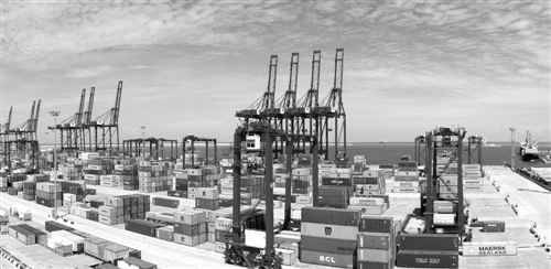 科倫坡南港集裝箱碼頭是中國和斯里蘭卡共建“21世紀海上絲綢之路”務(wù)實對接標桿性項目,是南亞最深的集裝箱碼頭。據(jù)測算,南港碼頭項目在35年合同期直接稅賦將達18億美元。同時,在建設(shè)和經(jīng)營期間可分別為當?shù)貏?chuàng)造3000個和7500個直接就業(yè)機會。圖為科倫坡南港集裝箱碼頭。 新華社發(fā)