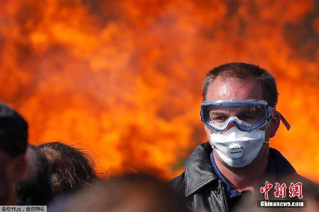5月29日消息,近日,法國(guó)多個(gè)地區(qū)爆發(fā)示威,抗議勞工改革。防暴警察在巴黎和其他城市與抗議者對(duì)峙,77人被捕,15個(gè)警察受傷,汽車(chē)和商店遭到洗劫。圖為法國(guó)多杰斯的示威者設(shè)立燃燒路障,對(duì)勞工改革表示抗議。