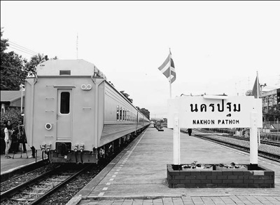 “中國(guó)造”新鐵路列車(chē)停靠在泰國(guó)佛統(tǒng)府車(chē)站。