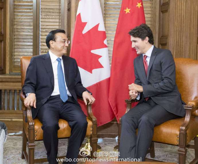 新華網(wǎng)北京9月23日電 當(dāng)?shù)貢r間22日,李克強總理與加拿大總理特魯多舉行會談,確認(rèn)正式啟動中加總理年度對話機制。會談中,兩國總理就中加關(guān)系和共同關(guān)心的地區(qū)國際問題進行了廣泛深入的交談。這是李克強和特魯多在不到一個月時間里第二次會晤。特魯多本月初剛剛訪華。(據(jù)新華社“新華國際”微博報道)