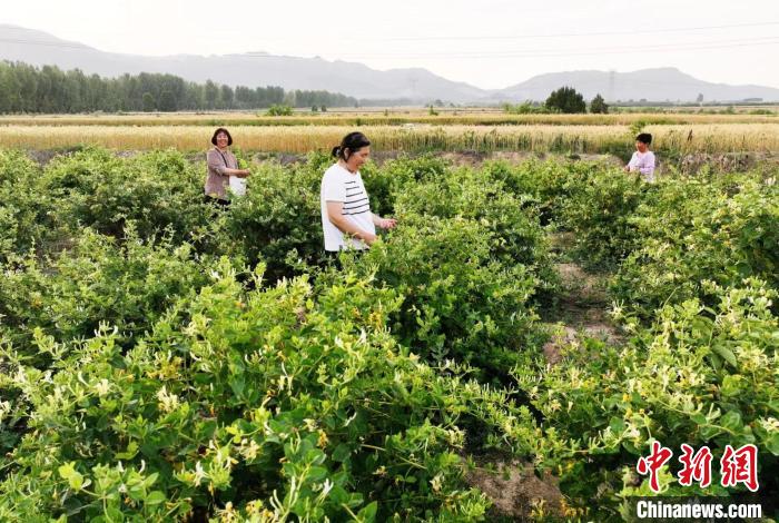 “三夏”大忙時(shí)節(jié),呂梁山脈姑射山下,山西省運(yùn)城市新絳縣澤掌鎮(zhèn)喬溝頭、吳嶺莊、光村等村,千畝金銀花喜獲豐收,花農(nóng)們正采摘搶收。近年來,當(dāng)?shù)匾浴盎ā睘椤懊健保掷m(xù)加大果、藥等產(chǎn)業(yè)發(fā)展,成為鄉(xiāng)村振興“新動(dòng)力”。