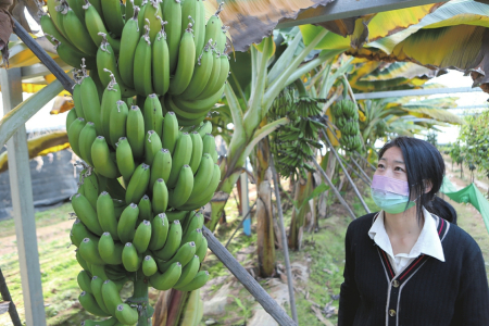 大棚內(nèi),成熟的香蕉掛滿枝頭,填補(bǔ)了北方無自產(chǎn)南方水果的空白。