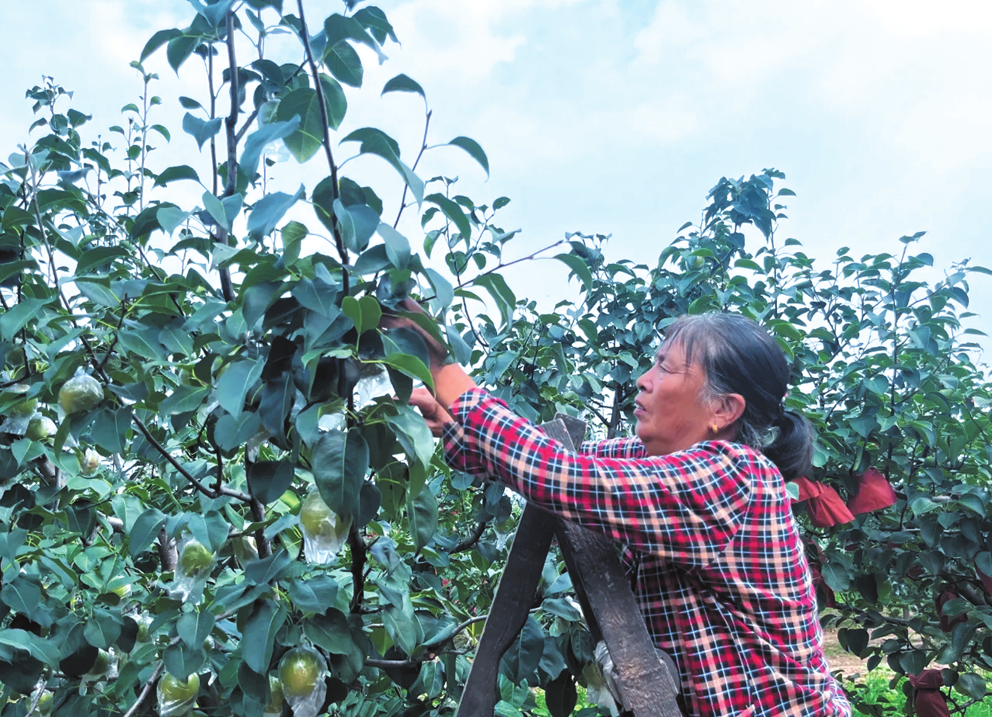 立秋時節(jié),忻府區(qū)蘭村鄉(xiāng)河習頭村700余畝梨園里,梨果沉甸甸地掛滿枝頭,梨農(nóng)們適時進行剪枝、疏果等精細化管護,靜待豐收。楊帆攝