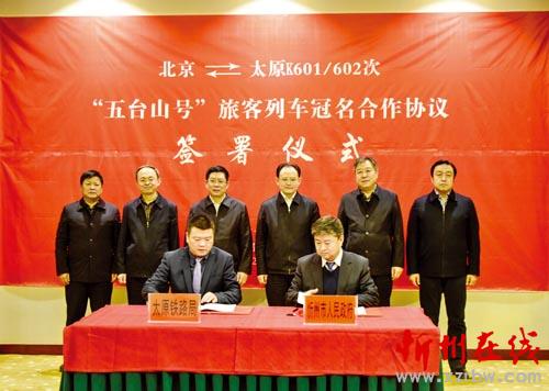本報訊(記者 楊峰雷)12月27日,我市與太原鐵路局共同簽署冠名合作協(xié)議,北京至太原K601/K602次列車正式冠名為“五臺山號”。市委書記李俊明出席協(xié)議簽署儀式并致辭,市長鄭連生主持,市委常委、常務副市長趙志堅出席。太原鐵路局局長趙春雷專程來忻出席儀式。