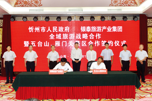 忻州市與銀泰旅游產(chǎn)業(yè)集團全域旅游戰(zhàn)略合作暨五臺山、雁門關(guān)景區(qū)合作協(xié)議簽約儀式現(xiàn)場。宮愛文 攝