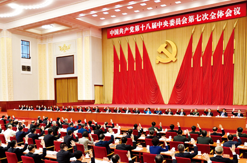 中國共產(chǎn)黨第十八屆中央委員會第七次全體會議,于2017 年10 月11 日至14 日在北京舉行。中央委員會總書記習近平作重要講話。新華社記者 馬占成 攝?