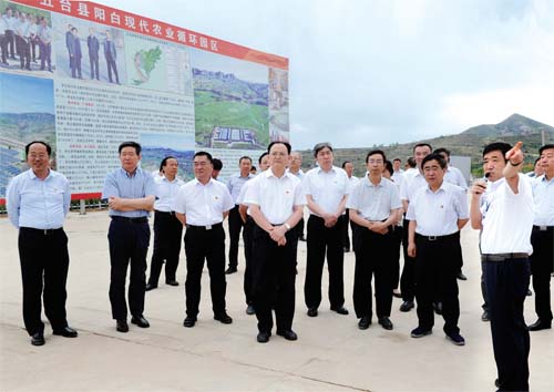 圖為省人大常委會(huì)副主任、市委書記李俊明帶領(lǐng)觀摩人員在五臺(tái)縣特色農(nóng)業(yè)產(chǎn)業(yè)扶貧陽(yáng)白現(xiàn)代農(nóng)業(yè)循環(huán)園區(qū)聽(tīng)取情況介紹。本報(bào)記者 劉紀(jì)森 攝