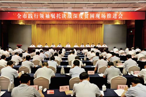 6月28日至30日,我市召開(kāi)踐行領(lǐng)袖囑托決戰(zhàn)深度貧困現(xiàn)場(chǎng)推進(jìn)會(huì)。圖為大會(huì)會(huì)場(chǎng)。本報(bào)記者 劉紀(jì)森 攝