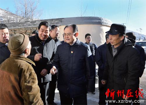 圖為省人大常委會副主任、市委書記李俊明在繁峙縣巖頭鄉(xiāng)茶鋪村向村民了解脫貧情況。本報記者劉紀(jì)森攝