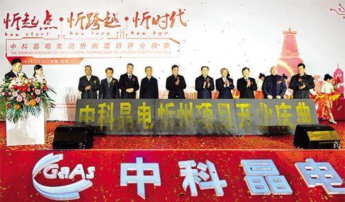 中科晶電忻州項目開業(yè)運營儀式 10、忻州著力打造“中國第二代半導(dǎo)體芯片之都”,中科晶電忻州半導(dǎo)體產(chǎn)業(yè)基地砷化鎵項目正式開業(yè)運營 11月5日,中科晶電忻州半導(dǎo)體產(chǎn)業(yè)基地砷化鎵項目正式開業(yè)運營。忻州中科晶電信息材料有限公司是在“中國制造2025”國家發(fā)展戰(zhàn)略大環(huán)境下,在山西全面深化改革、促進(jìn)資源型地區(qū)轉(zhuǎn)型發(fā)展的大背景下,抓住忻州得天獨厚的區(qū)位、便利的資源成本和較低的勞動用工成本優(yōu)勢,在省市各級政府的持續(xù)重點關(guān)注和大力支持下設(shè)立的新型半導(dǎo)體材料砷化鎵晶體及晶片制造加工項目。投資2.5億元的項目是以研發(fā)、生產(chǎn)、銷售砷化鎵襯底材料為主,配套建筑面積約1.7萬平方米,建設(shè)有2英寸、3英寸、4英寸、6英寸砷化鎵襯底材料大規(guī)模生產(chǎn)線,規(guī)劃年產(chǎn)砷化鎵單晶片折合4英寸200萬片。企業(yè)著力推動砷化鎵襯底材料產(chǎn)業(yè)化項目成為忻州科技產(chǎn)業(yè)發(fā)展的新動力、新引擎、新亮點,努力為產(chǎn)業(yè)升級起到積極的示范作用。