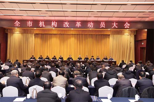 會議指出,要充分認識深化黨和國家機構(gòu)改革的重大意義,增強推進機構(gòu)改革工作的思想自覺、政治自覺和行動自覺。深化黨和國家機構(gòu)改革是黨中央作出的重大決策部署,是推進國家治理體系、治理能力現(xiàn)代化的一場深刻變革,要充分認識推動這場改革的歷史現(xiàn)實必然性,準確把握這次改革的正確方向和著力點,堅持自覺推動機構(gòu)改革工作的政治擔當。我市機構(gòu)改革的工作重點已經(jīng)進入到抓組織實施的重要階段,當前又處歲末年初,頭緒多、任務(wù)重、時間緊。做好全市機構(gòu)改革工作,既是一項重大政治任務(wù),也是一次重大政治考驗。各級黨委(黨組)要將其作為頭等大事來謀劃組織落實推動,全市各級各部門要提高政治站位,統(tǒng)一思想認識,牢記“四個意識”,堅定“四個自信”,做到“兩個維護”,領(lǐng)導干部特別是“一把手”既要掛帥又要出征,強化責任擔當,狠抓任務(wù)落實,確保改革落地。