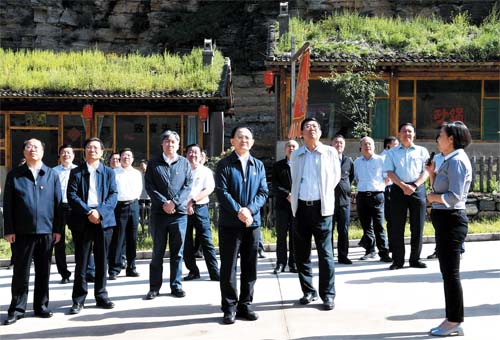 省人大常委會副主任、市委書記李俊明和參會人員在寧武縣涔山鄉(xiāng)大石洞村觀摩整村提升情況。本報記者 劉紀(jì)森 攝