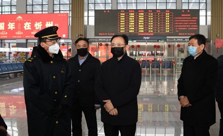 省人大常委會副主任、市委書記李俊明在火車站檢查督導疫情防控措施準備情況 本報記者 劉紀森 攝