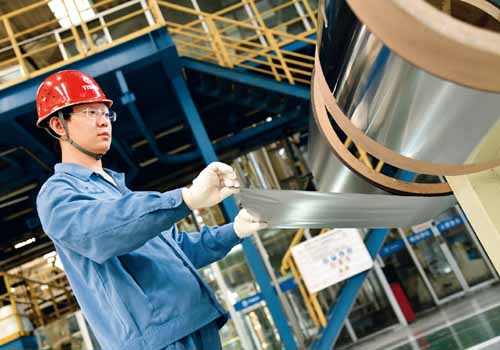 山西堅(jiān)定貫徹落實(shí)習(xí)近平總書記關(guān)于創(chuàng)新驅(qū)動(dòng)、科教興國(guó)、人才強(qiáng)國(guó)的重大戰(zhàn)略思想,手撕鋼、碳纖維、碳化硅等技術(shù)創(chuàng)新取得重大突破。圖為太鋼集團(tuán)生產(chǎn)車間正生產(chǎn)手撕鋼。該公司2018年研發(fā)的寬幅精密帶鋼箔材(厚度0.02毫米,寬640毫米)成為世界首創(chuàng),因其厚度不到頭發(fā)直徑的1/3、比A4紙還要薄、可以用手輕易撕開,被形象地稱為“手撕鋼”。 山西省委宣傳部供圖
