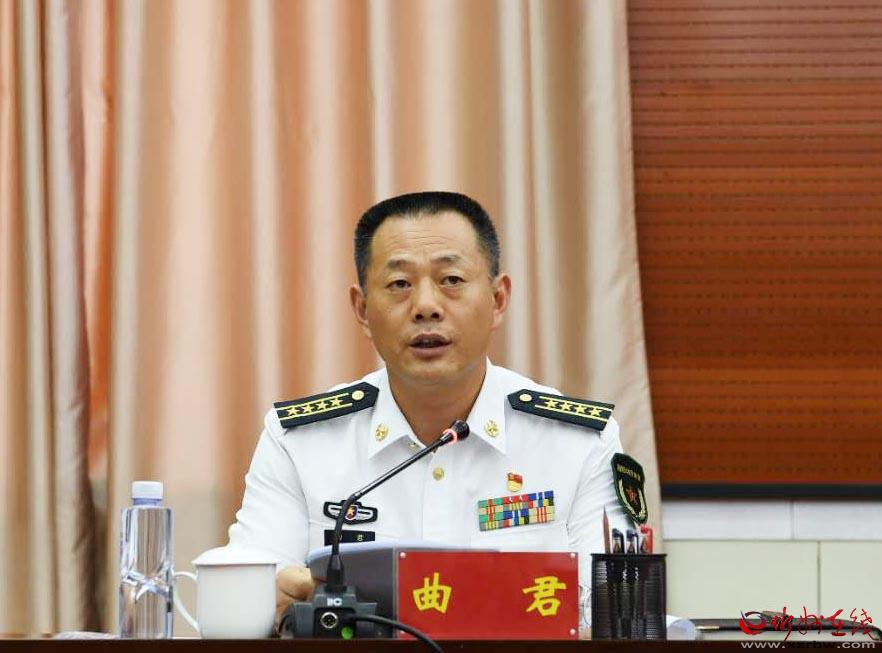 曲君傳達省委議軍會議精神,匯報國防動員和后備力量建設情況。劉紀森 攝
