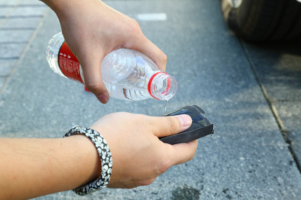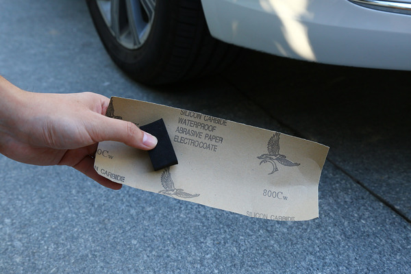 開始補(bǔ)漆作業(yè),先清洗劃痕位置以及周圍地方。先用800的砂紙進(jìn)行打磨,墊上一塊墊木沾一些水,可以更好掌握砂紙打磨時的力度。將劃痕處的漆面以及傷痕打磨平整并再次清洗擦干。