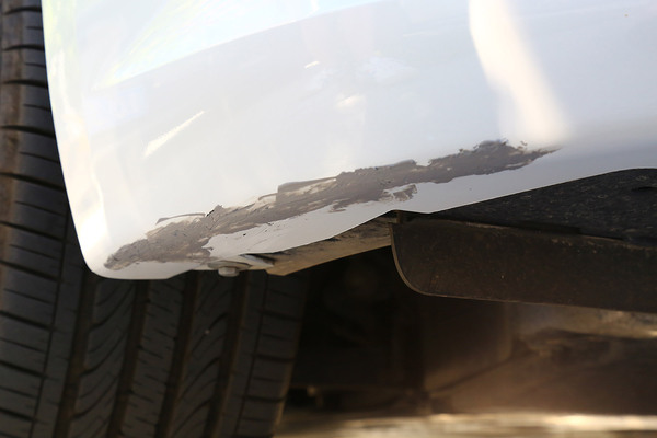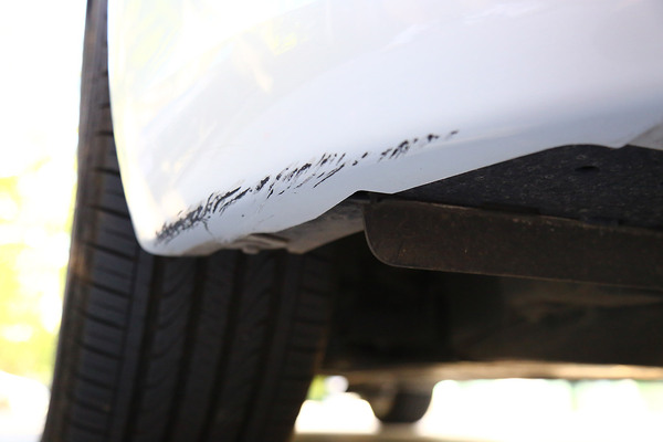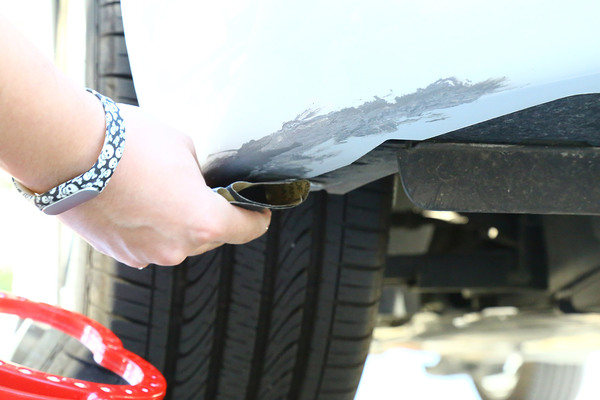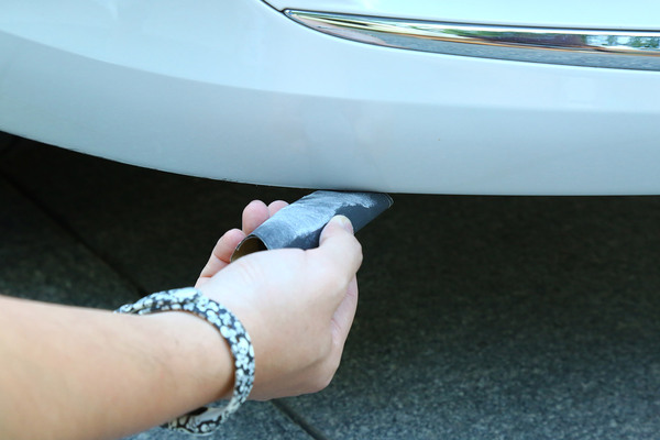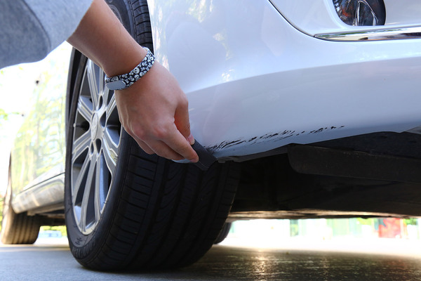 我們找來一輛前保險杠底部被蹭得面目全非的可憐車,在選擇補(bǔ)漆工具時要根據(jù)劃痕的情況進(jìn)行合理選擇,不過就算是最嚴(yán)重的大面積傷及底漆的修補(bǔ)套裝,一般也不超過百元。