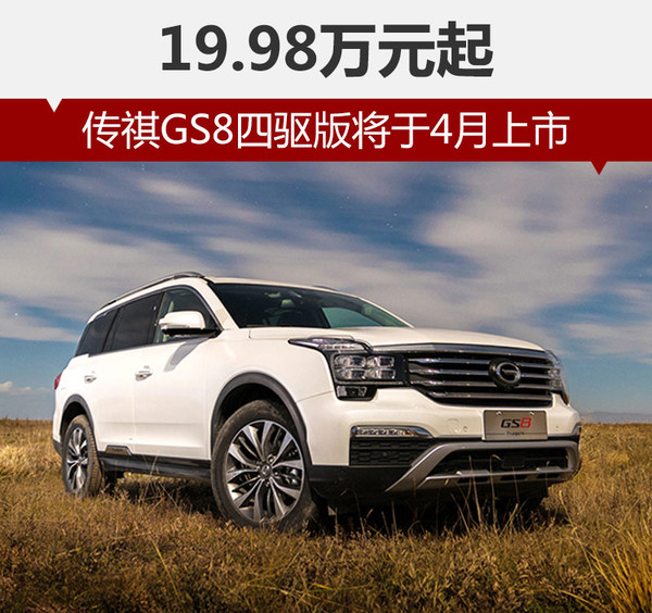 廣汽傳祺在推出GA8后繼續(xù)完善其高端布局,推出了旗艦SUV GS8。去年10月26號(hào),傳祺GS8正式上市,先期推出四款兩驅(qū)車型,而四驅(qū)車型后續(xù)上市。網(wǎng)通社從廣汽傳祺內(nèi)部人士獲悉,GS8四驅(qū)版將于4月上市。新車上市后將正式與長(zhǎng)安CS95展開競(jìng)爭(zhēng)。