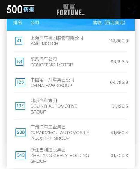 2017年7月20日,美國《財富》雜志正式公布“2017世界500強企業(yè)”排名。在今年的榜單中,中國上榜公司數(shù)量連續(xù)十四年增長,達到115家,僅次于美國,遠遠超越排在第三位的日本。而在這些大型企業(yè)佼佼者中,共有6家中國車企成功入選,分別是:上海汽車集團股份有限公司,位列41名;東風汽車公司,位列68名;中國第一汽車集團公司,位列125名;北京汽車集團,位列137名;廣州汽車工業(yè)集團,位列238名;浙江吉利控股集團,位列343名。6家車企2016年營收總和達3989.59億美元,凸顯“中國制造”不俗實力。