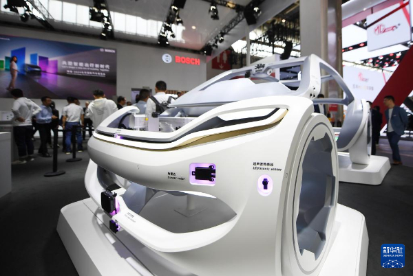在北京車展上,博世公司展臺(tái)展出可用于新能源汽車智能出行解決方案的相關(guān)產(chǎn)品(4月25日攝)。新華社記者鞠煥宗攝