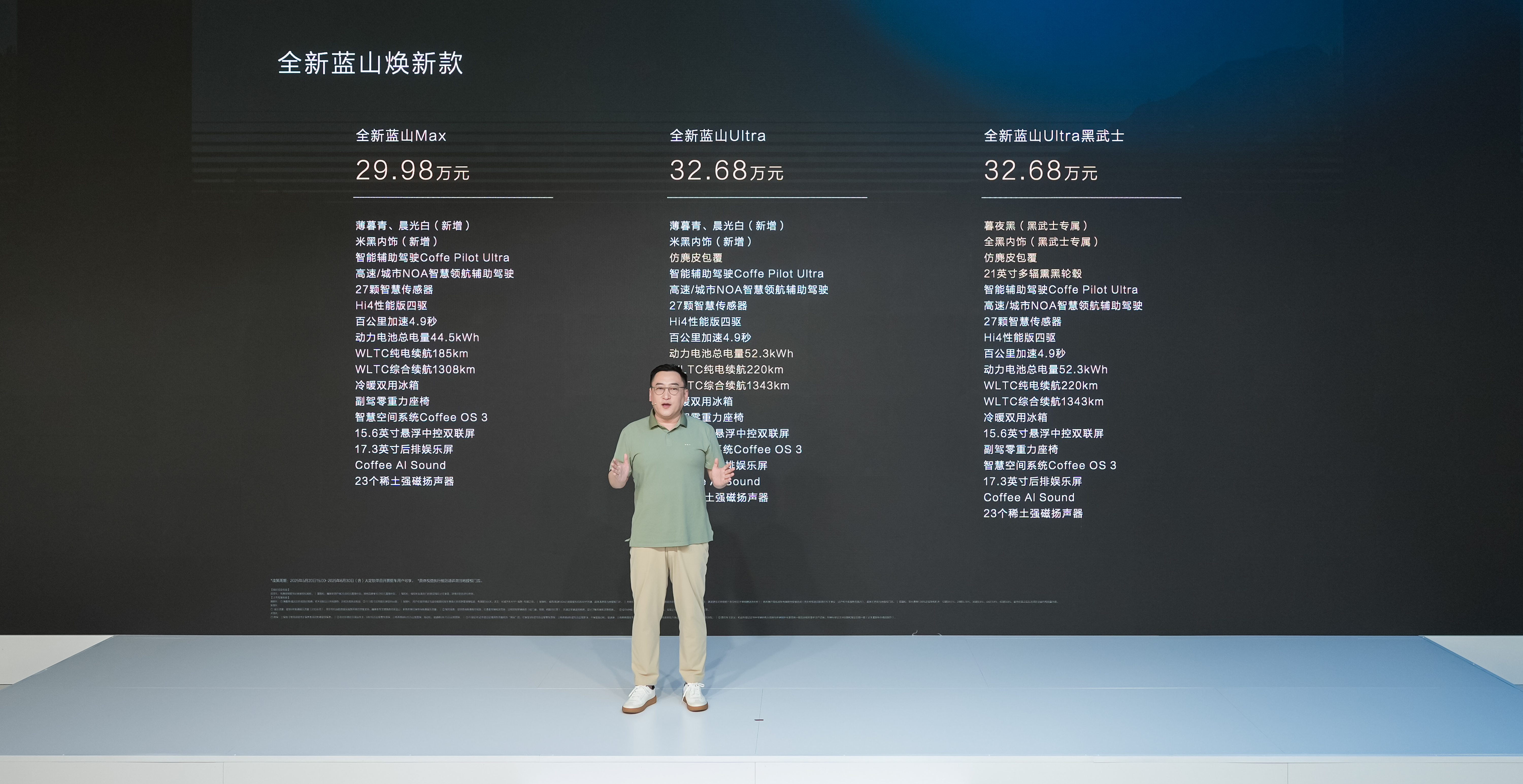 全新藍(lán)山煥新款正式發(fā)布,全新藍(lán)山煥新款MAX版、全新藍(lán)山煥新款Ultra版、全新藍(lán)山煥新款Ultra黑武士版售價分別為29.98萬元、32.68萬元、32.68萬元。購車用戶可享至高價值82,599元的限時煥新權(quán)益,魏牌老用戶置換全新藍(lán)山煥新款,可獲翻倍補(bǔ)貼及終身免費(fèi)流量。
