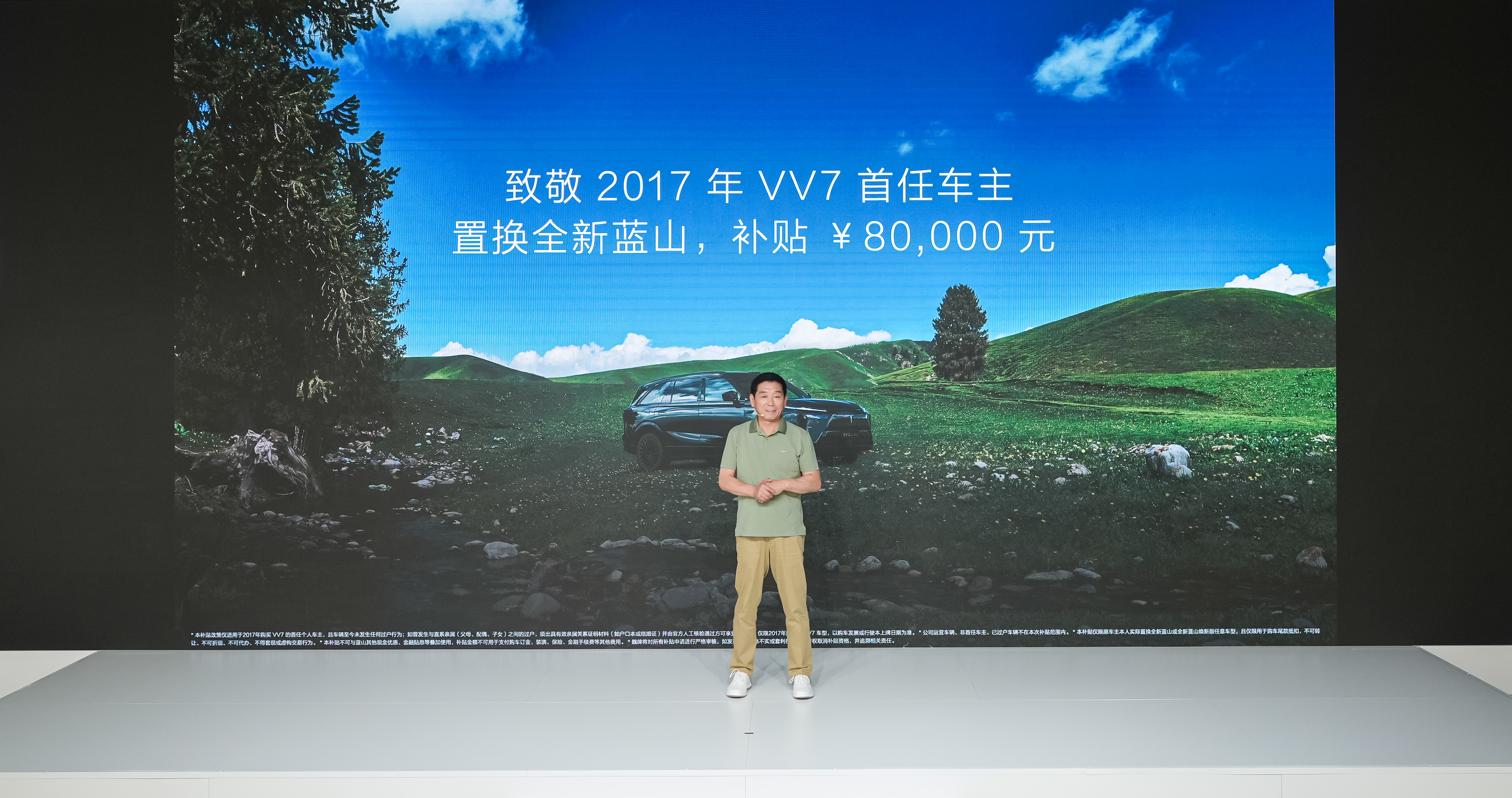 魏建軍表示:“我們不能虧待和忘記最初支持我們的那批用戶。要感謝他們最早支持我們魏牌。所以今天,為最早在2017年購買VV7的首任車主補(bǔ)貼,在魏牌8周年之際,置換全新藍(lán)山,補(bǔ)貼8萬。”