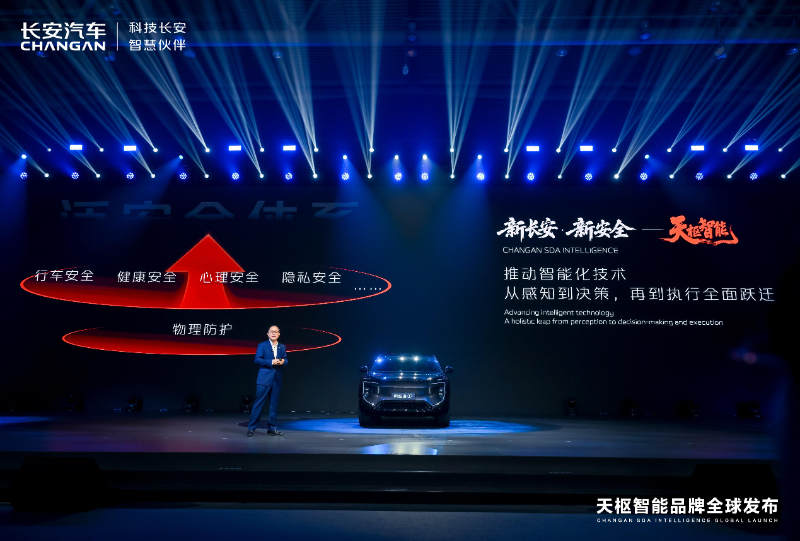 長安汽車將安全理念從傳統狹義的物理防護,逐步擴展為涵蓋行車安全、健康安全、心理安全、隱私安全等的“泛安全”體系。這一理念全面應用于長安智能化技術開發(fā),并逐步實現從感知到決策,再到執(zhí)行的全面躍遷,最終形成了“新長安·新安全——天樞智能”品牌。