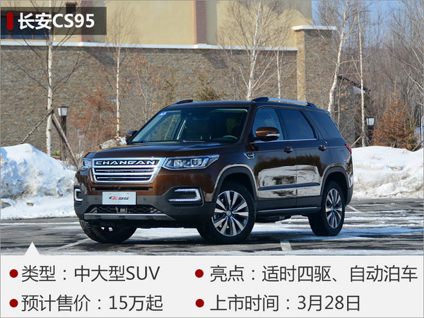 長(zhǎng)安CS95是一款中大型SUV,于去年廣州車(chē)展正式發(fā)布,并將在今年3月28日上市。CS95的長(zhǎng)寬高為4949*1930*1785mm,軸距2810mm。新車(chē)搭載全景天窗、車(chē)頂行李架以及LED大燈組等。在內(nèi)部配置方面,長(zhǎng)安CS95配備了方向盤(pán)加熱、定速巡航等實(shí)用性配置。此外,新車(chē)還配備了ABS防抱死、車(chē)身穩(wěn)定控制系統(tǒng)等安全性配置。CS95搭載長(zhǎng)安汽車(chē)自主研發(fā)的藍(lán)鯨2.0TGDI發(fā)動(dòng)機(jī),最大功率171kW,峰值扭矩360Nm。