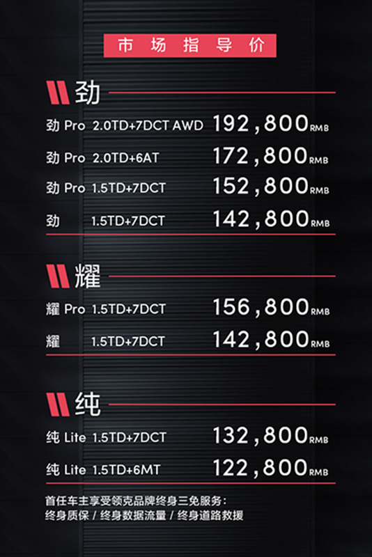 6月28日,領(lǐng)克02正式上市,售價(jià)區(qū)間為12.28-19.28萬元,共計(jì)8款車型。同時(shí),所有購買領(lǐng)克02的首任車主,都將享受到終身免費(fèi)質(zhì)保、終身免費(fèi)數(shù)據(jù)流量、終身免費(fèi)道路救援的三免服務(wù)。此外,領(lǐng)克01 PHEV也將于7月27日通過在線商城的方式對(duì)外銷售,共推出2款車型,補(bǔ)貼前預(yù)售價(jià)區(qū)間24-27萬元。