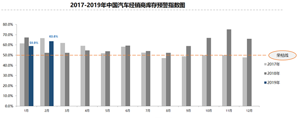 2月,汽車經(jīng)銷商庫存預(yù)警指數(shù)為63.6%,環(huán)比上升4.7個百分點,同比上升11.3個百分點。樊宇表示,2月適逢春節(jié)假期,客流量明顯減少,導(dǎo)致銷量下滑。部分經(jīng)銷商在節(jié)前清庫存,調(diào)整了2月進車節(jié)奏,但由于整體汽車市場情況不樂觀,價格競爭嚴(yán)峻,經(jīng)銷商經(jīng)營壓力依然較大。