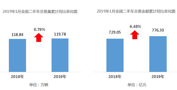 與新車不同,1月的二手車市場雖然環(huán)比依然延續(xù)下滑態(tài)勢,但是同比的小幅上漲,卻也傳遞出較好的市場訊號。1月,全國二手車市場交易量119.78萬輛,環(huán)比下降1.59%,同比小幅上漲0.79%,交易金額776.30億元。