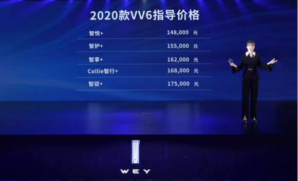 長城汽車股份有限公司副總裁兼WEY品牌營銷總經(jīng)理柳燕公布2020款VV6價(jià)格
