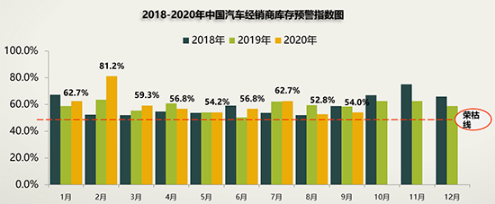 即便處于汽車(chē)市場(chǎng)的“金九”旺季,經(jīng)銷(xiāo)商的庫(kù)存壓力依然不小。昨日(10月13日),流通協(xié)會(huì)發(fā)布數(shù)據(jù)顯示,9月,國(guó)內(nèi)汽車(chē)經(jīng)銷(xiāo)商庫(kù)存預(yù)警指數(shù)為54.0%,較上月上升1.2個(gè)百分點(diǎn),較去年同期下降4.6個(gè)百分點(diǎn),庫(kù)存預(yù)警指數(shù)位于榮枯線之上。