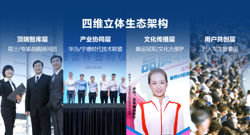“品牌摯友計(jì)劃”是北汽集團(tuán)“品牌三年躍升行動(dòng)”的重要引擎,構(gòu)建一個(gè)“四維立體生態(tài)”:頂端智庫層,邀請(qǐng)?jiān)菏俊<摇⒔?jīng)濟(jì)學(xué)家組成戰(zhàn)略顧問團(tuán);產(chǎn)業(yè)協(xié)同層,與華為、寧德時(shí)代等合作伙伴共建技術(shù)品牌聯(lián)盟;文化傳播層,攜手奧運(yùn)冠軍、文化名人打造"美好出行大使"IP;用戶共創(chuàng)層,建立萬人級(jí)車主智囊團(tuán)。除了外部資源,品牌摯友計(jì)劃還將逐步拓展至20位內(nèi)部管理者及300名KOE員工。