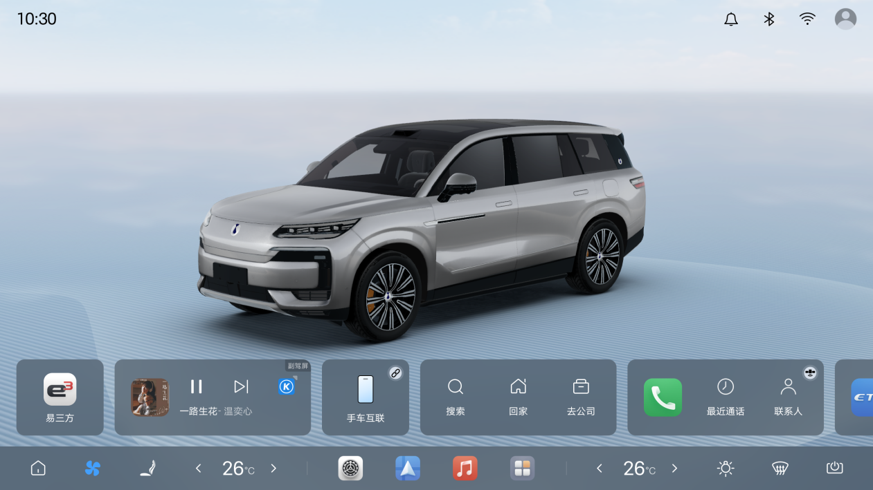 在智能化高速發(fā)展的今天,2026款騰勢N9持續(xù)進化,升級全新智能座艙UI界面,新增時光桌面、3/7分屏等功能,用戶還能自由添加偏好應用。騰勢N9具備手機NFC車鑰匙、UWB車鑰匙等全場景數字鑰匙,并擁有手車互聯等功能,支持全球主流手機品牌。