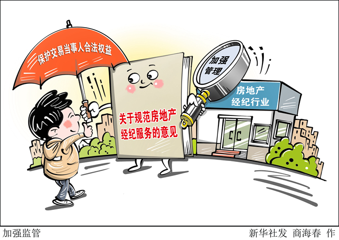 新華社北京5月8日電(記者王優(yōu)玲)加強(qiáng)經(jīng)紀(jì)從業(yè)主體管理,合理確定經(jīng)紀(jì)服務(wù)收費(fèi),嚴(yán)格實(shí)行明碼標(biāo)價(jià),加強(qiáng)個(gè)人信息保護(hù)……住房和城鄉(xiāng)建設(shè)部、國(guó)家市場(chǎng)監(jiān)督管理總局8日對(duì)外發(fā)布意見,從十方面明確監(jiān)管措施,加強(qiáng)房地產(chǎn)經(jīng)紀(jì)行業(yè)管理,保護(hù)交易當(dāng)事人合法權(quán)益。